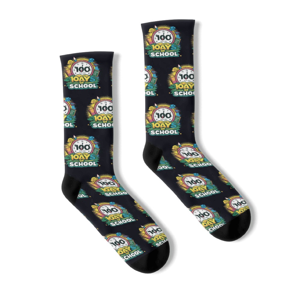 Own fascinating 100 Days of School Socks Design or see more Socks products now from Printblur shop to enjoy your shopping time!