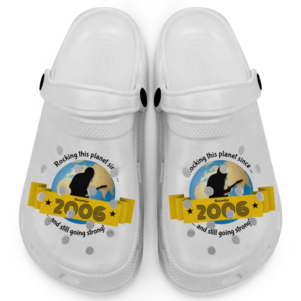 Buy eye-catching 18th birthday Rocking this planet since 11/2006 Clogs or see more Clogs products at Printblur shop now to explore many surprises from our shop!