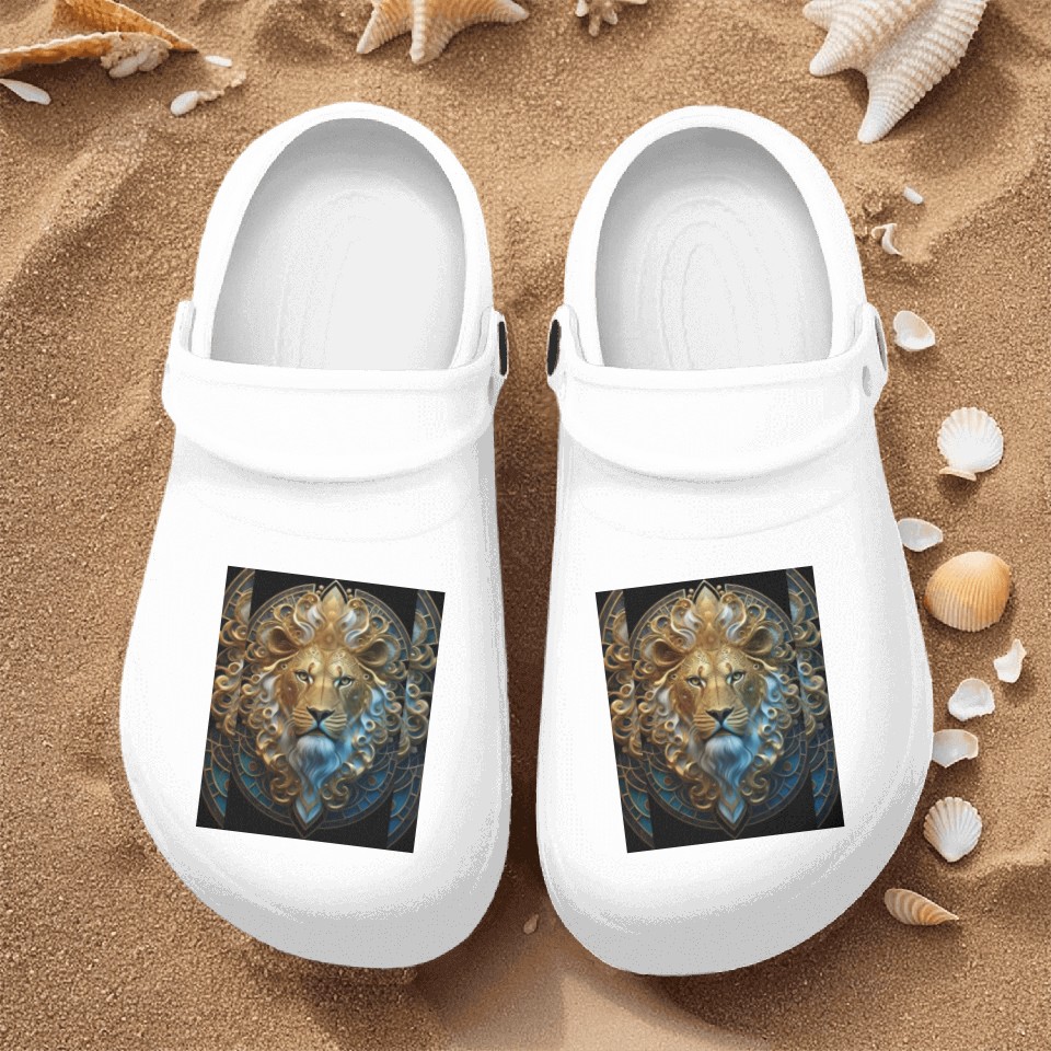 You are contemplating one of the best-selling products 1920s Art Deco lion, gold Nurse Clogs For Men WHITE belong theme Nurse Clogs at Printblur