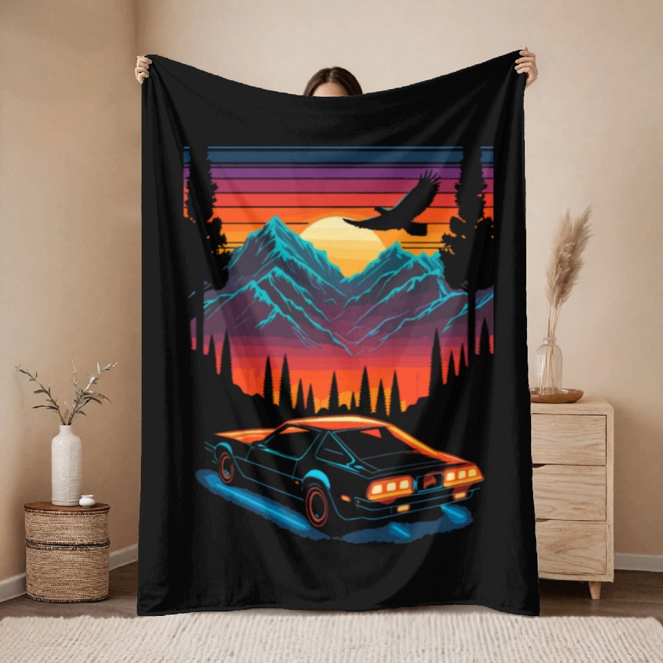 Own fascinating 1980s Muscle Car and Retro Neon Mountain Sunset Throw Blankets or see more Throw Blankets products now from Printblur shop to enjoy your shopping time!