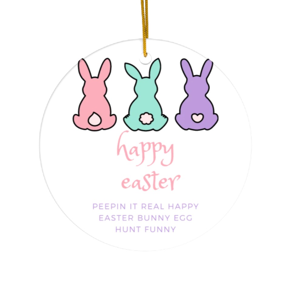 You're searching for a one-of-a-kind product 1Peepin It Real Happy Easter Bunny Egg Hunt Funny Ceramic Ornaments For WHITE belong theme Ceramic Ornaments at Printblur