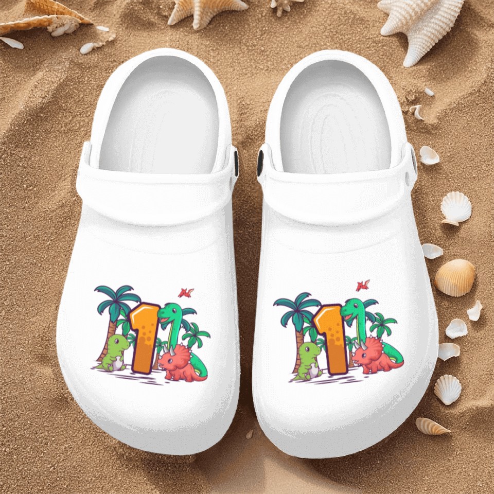 1st Birthday T-Rex Triceratops Dinosaur 1 Year Nurse Clogs