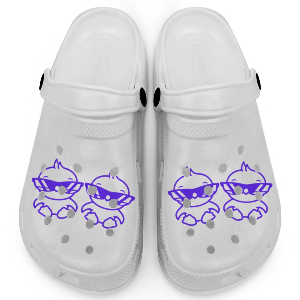 You are seeing a unique and impressive product 2 Duck Chick Birds Party Animals Crew Team Friends Clogs For Kids WHITE belong theme Clogs at Printblur