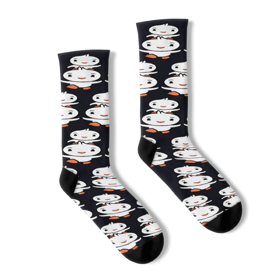 Elevate your sock game with our custom all-over-print (AOP) mid-calf socks. Crafted from a flexible 90% polyester, 10% spandex blend, these socks offer a comfortable, long-lasting fit.