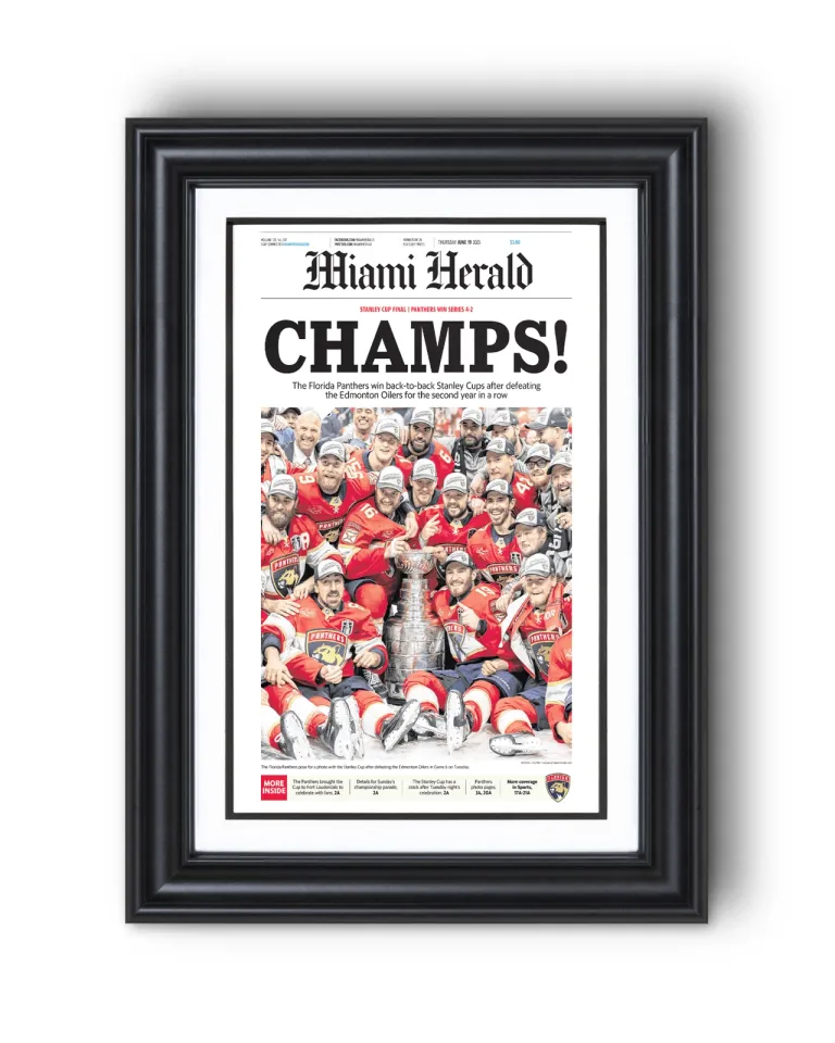 Shop for attractive 2025 Florida Panthers Stanley Cup "Champs" Front Page Newspaper Style or see more Premium Matte Vertical Posters products on https://printblur.com right now!