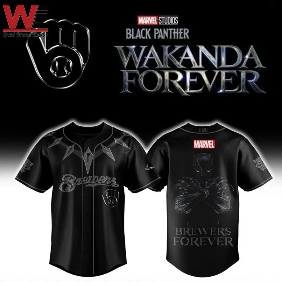 You are shopping for a stunning and trendy product 2025 Marvel Black Panther x Milwaukee Brewer Baseball Jersey For Men belong theme Baseball Jerseys at Printblur