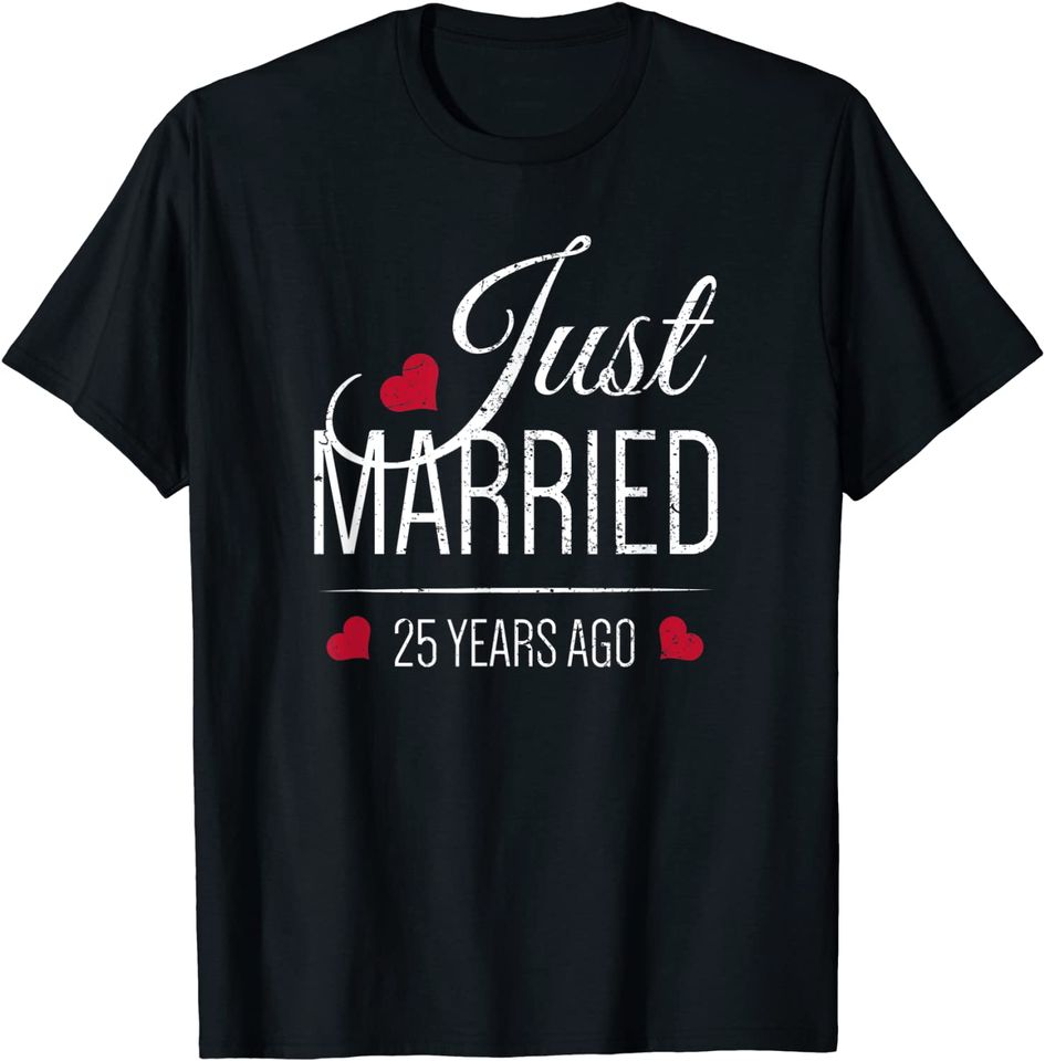 Buy eye-catching 25th Wedding Anniversary T-Shirt - Just Married 25 Years Ago or see more T-Shirts products at Printblur shop now to explore many surprises from our shop!
