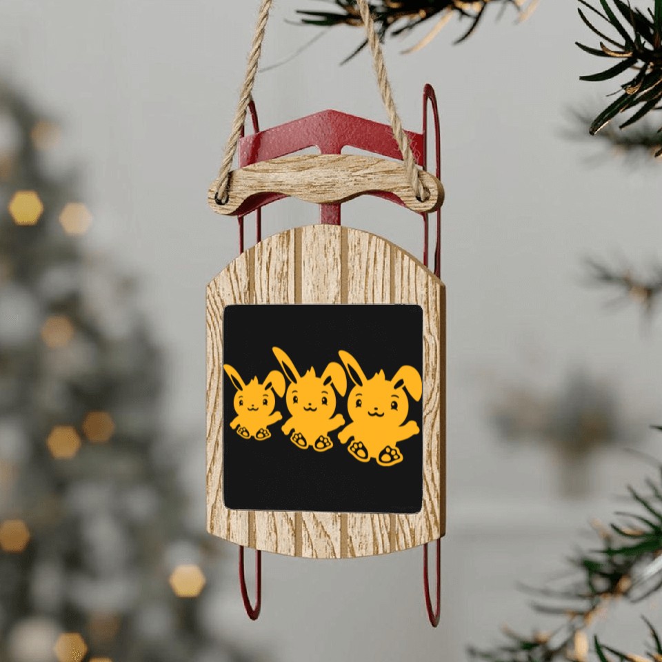 You are viewing an exclusive and elegant product 3 Rabbits Three Friends Team Crew Waving Sitting Sled Ornaments For Black belong theme Sled Ornaments at Printblur