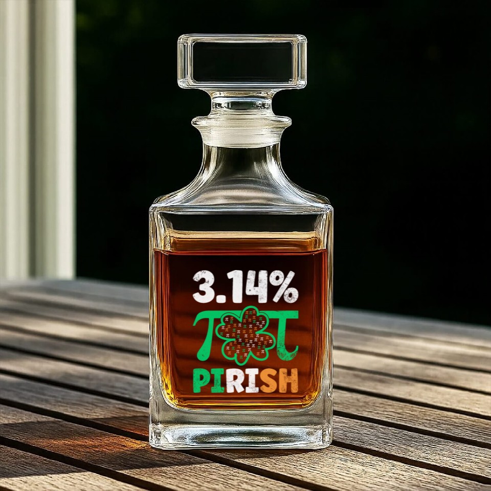 3.14% PIrish Funny St. Patricks Math Geek Pi Day Whiskey Decanters