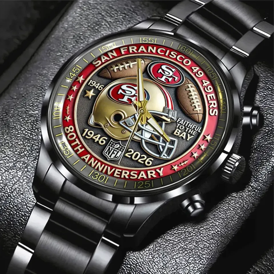 Buy stunning 49ers 80th Anniversary 2026 Black Stainless Steel Watch or see more Calendar Steel Band Watch products at Printblur right now to receive many amazing discounts!