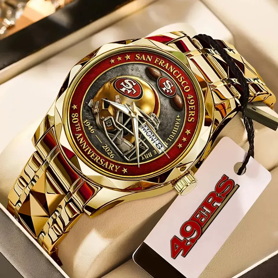 You are seeing a unique and impressive product 49ers 80th Anniversary Alloy Quartz Watch For belong theme Calendar Steel Band Watch at Printblur