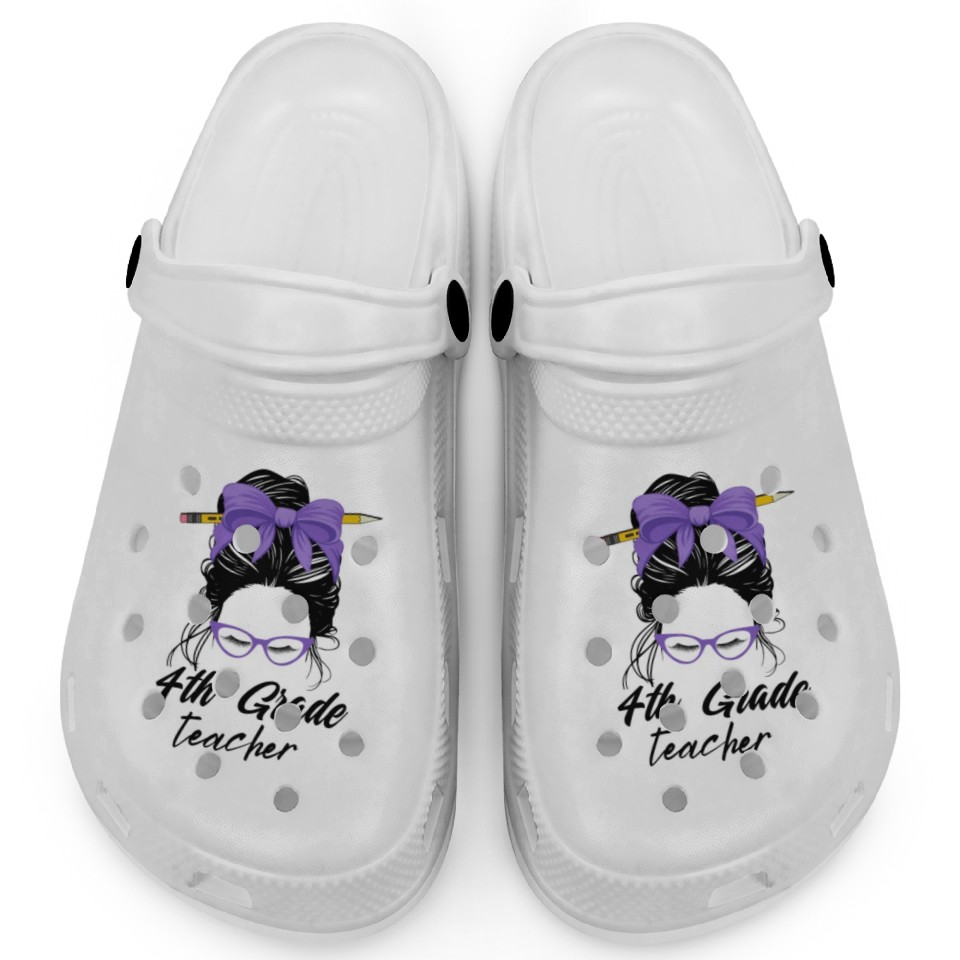 Own fascinating 4th grade teacher messy bun back to school funny Clogs or see more Clogs products now from Printblur shop to enjoy your shopping time!