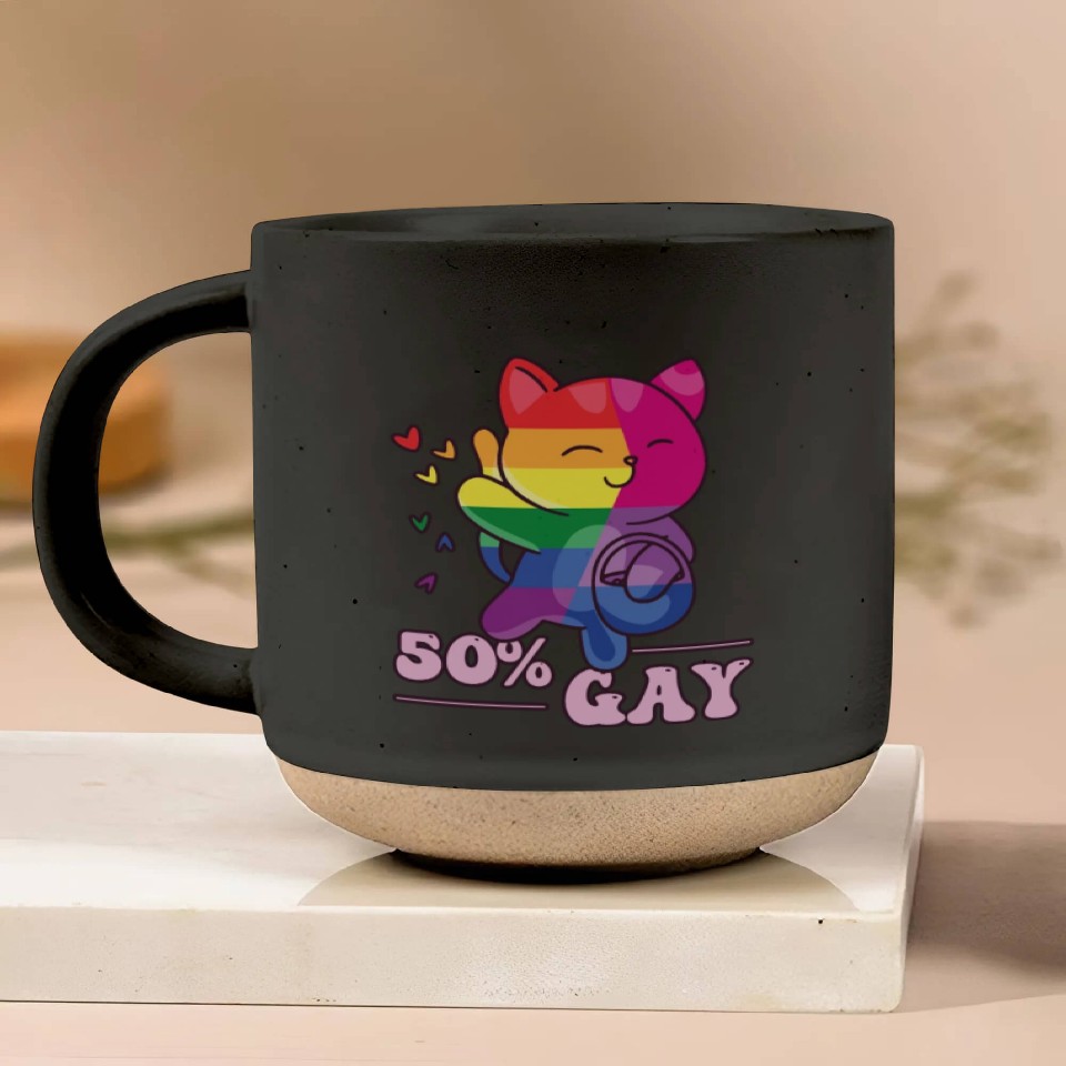 The item hot trend you're looking at is 50% Gay Bi Bisexual Pride Kawaii Cat Kawaii Pottery Mugs For Black belong theme Pottery Mugs at Printblur