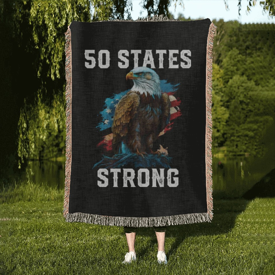 You're searching for a one-of-a-kind product 50 States Strong American Bald Eagle America 4th Woven Blankets For Black belong theme Woven Blankets at Printblur