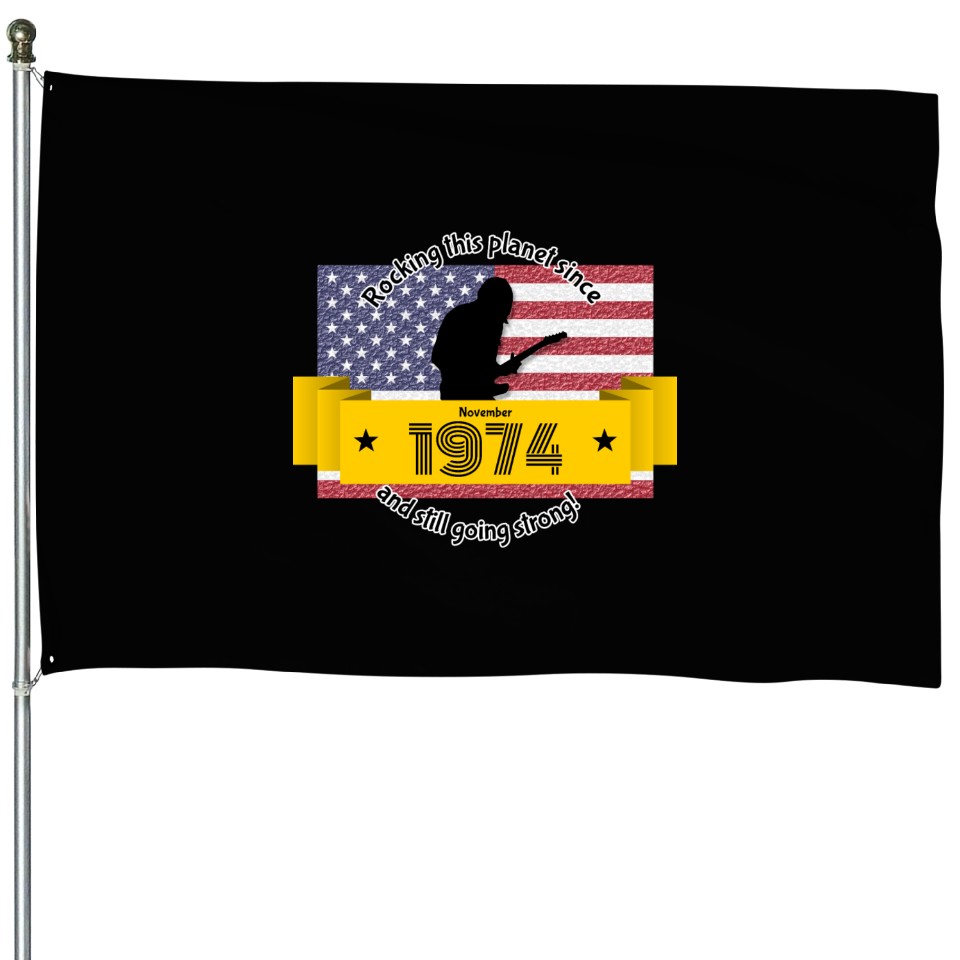 Buy eye-catching 50th birthday Rocking this planet since 11/1974 House Flags or see more House Flags products at Printblur shop now to explore many surprises from our shop!