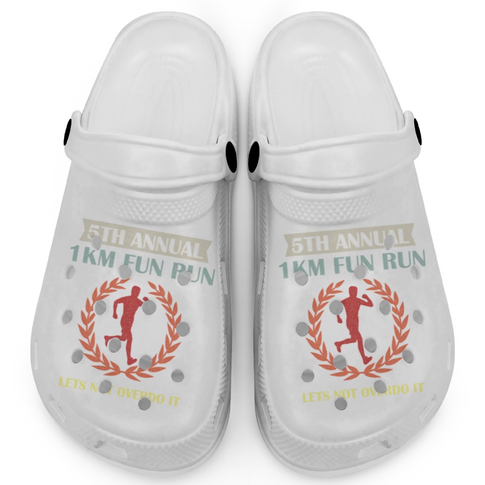 You are seeing a unique and impressive product 5Th Annual 1Km Fun Run Lets Not Overdo It Jogging Clogs For Kids WHITE belong theme Clogs at Printblur