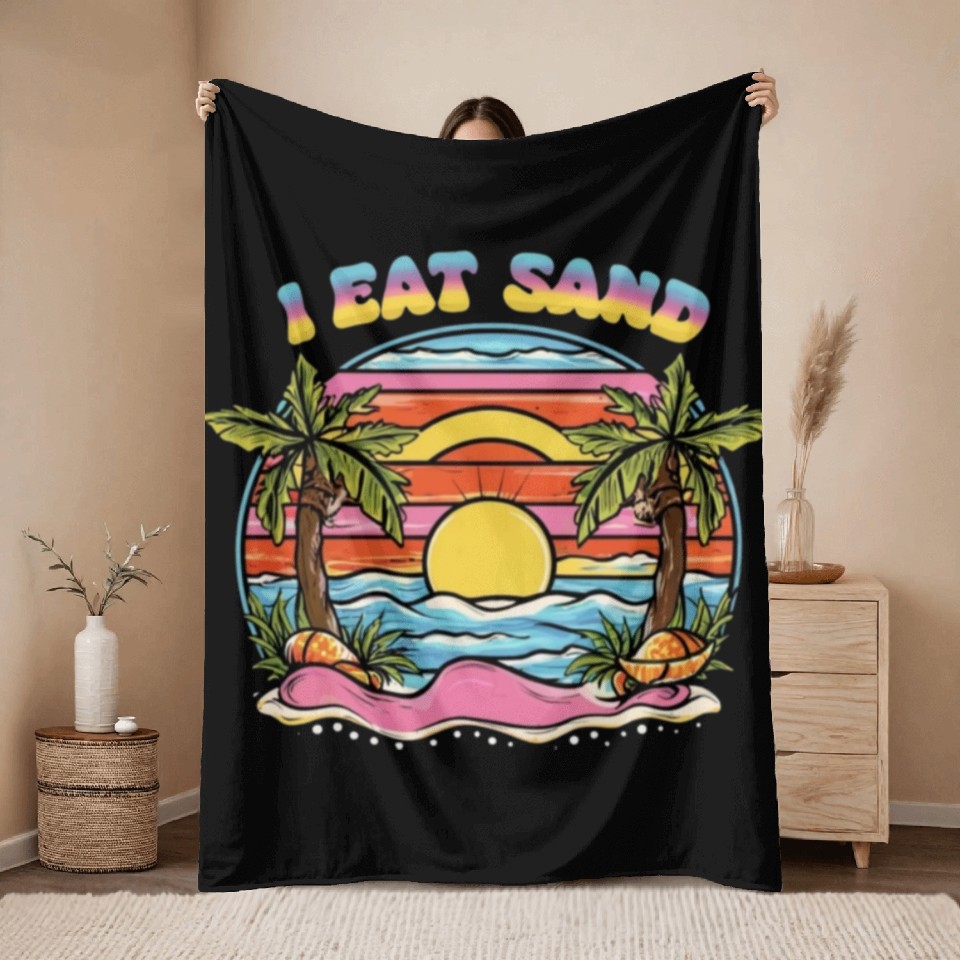 Buy stunning 60s Groovy I Eat Sand and Sunset Beach Throw Blankets or see more Throw Blankets products at Printblur right now to receive many amazing discounts!