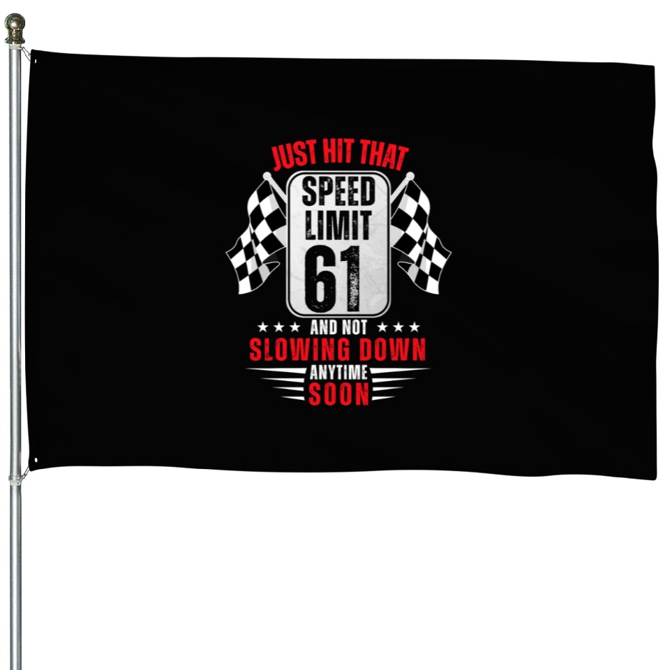 Buy eye-catching 61th Birthday Speed Limit Sign 61 Years Old Racing House Flags or see more House Flags products at Printblur shop now to explore many surprises from our shop!