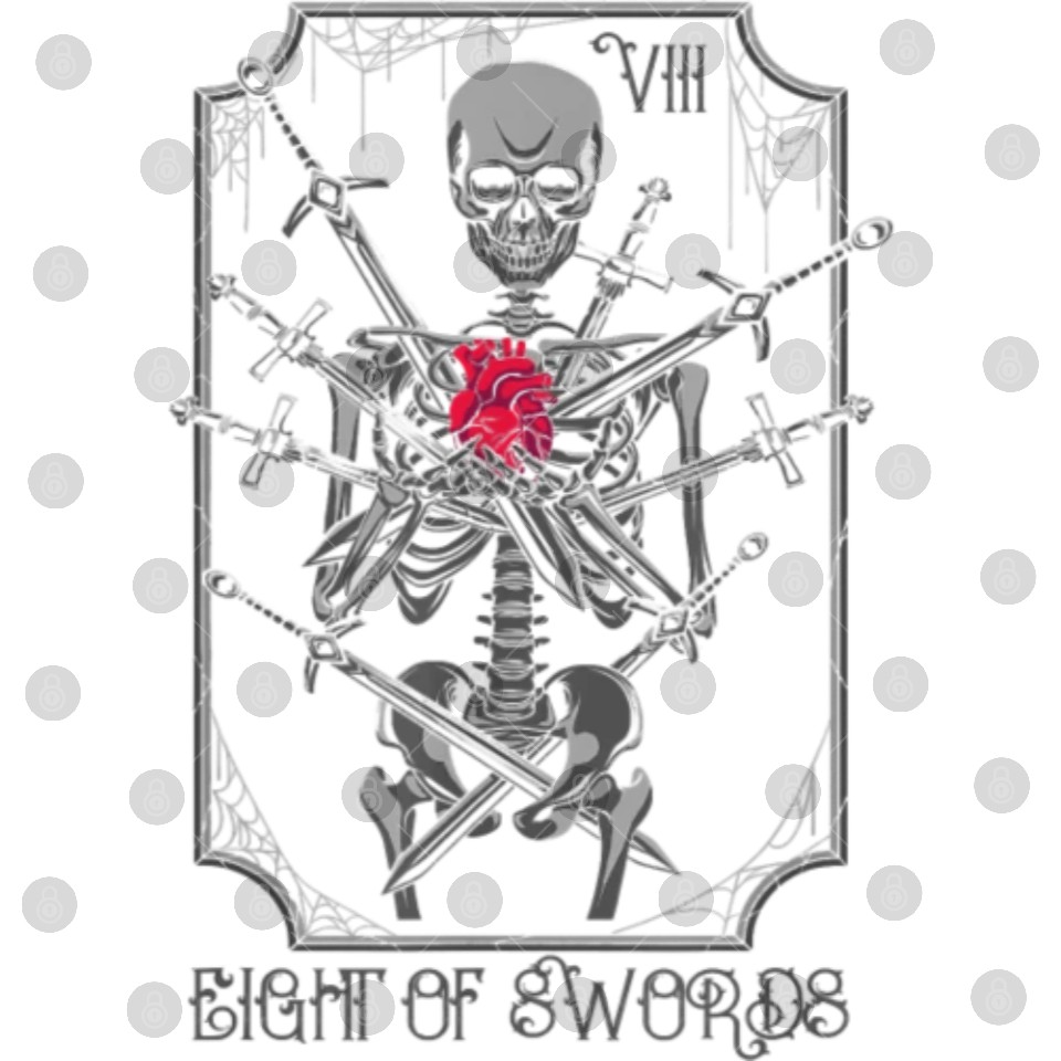 You're taking a peek at the product 8 of Swords Tarot Card Skeleton Witchy Pagan Digital Files For WHITE belong theme Digital Files at Printblur