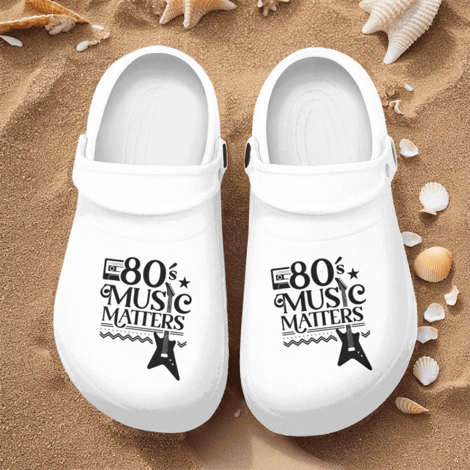 You're searching for a one-of-a-kind product 80s Music Matters Musician Nurse Clogs For Men WHITE belong theme Nurse Clogs at Printblur