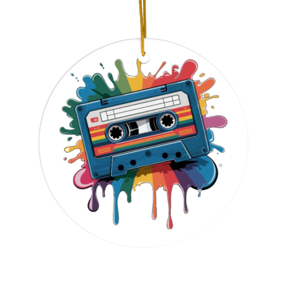 You're looking at the eye-catching product 80s Retro Cassette Splash Classic Cassette Tape Ceramic Ornaments For WHITE belong theme Ceramic Ornaments at Printblur