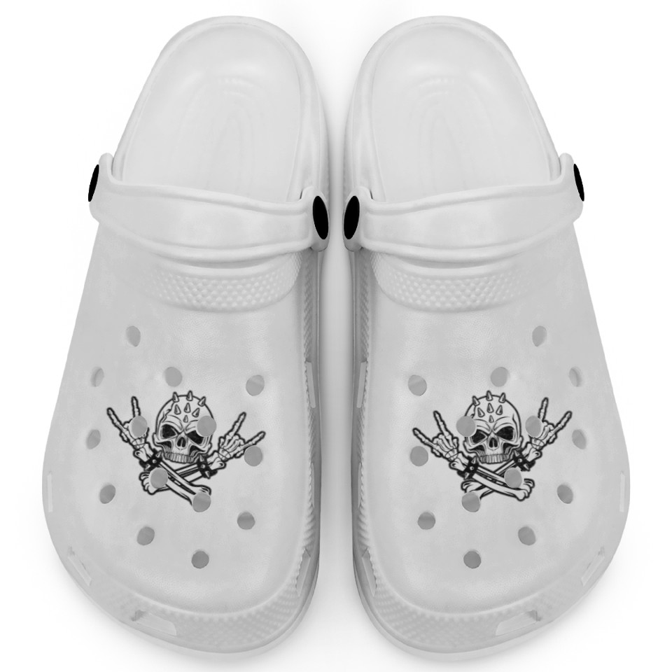 You are shopping for a stunning and trendy product 80S Rock And Roll Distressed Music Guitar Band Clogs For Kids WHITE belong theme Clogs at Printblur