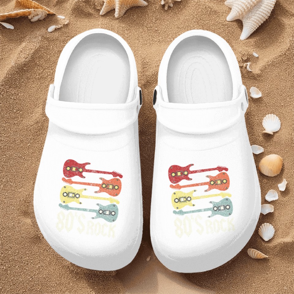 You are seeing a unique and impressive product 80s Rock Band Guitar Cassette Tape 1980s Nurse Clogs For Men WHITE belong theme Nurse Clogs at Printblur