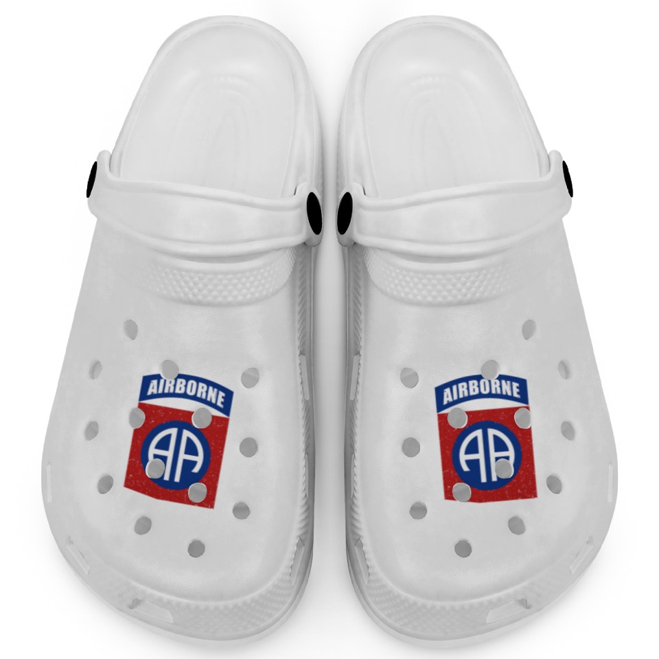 The product unique design you searched for is 82nd Airborne Division US Army Clogs For Kids WHITE belong theme Clogs at Printblur