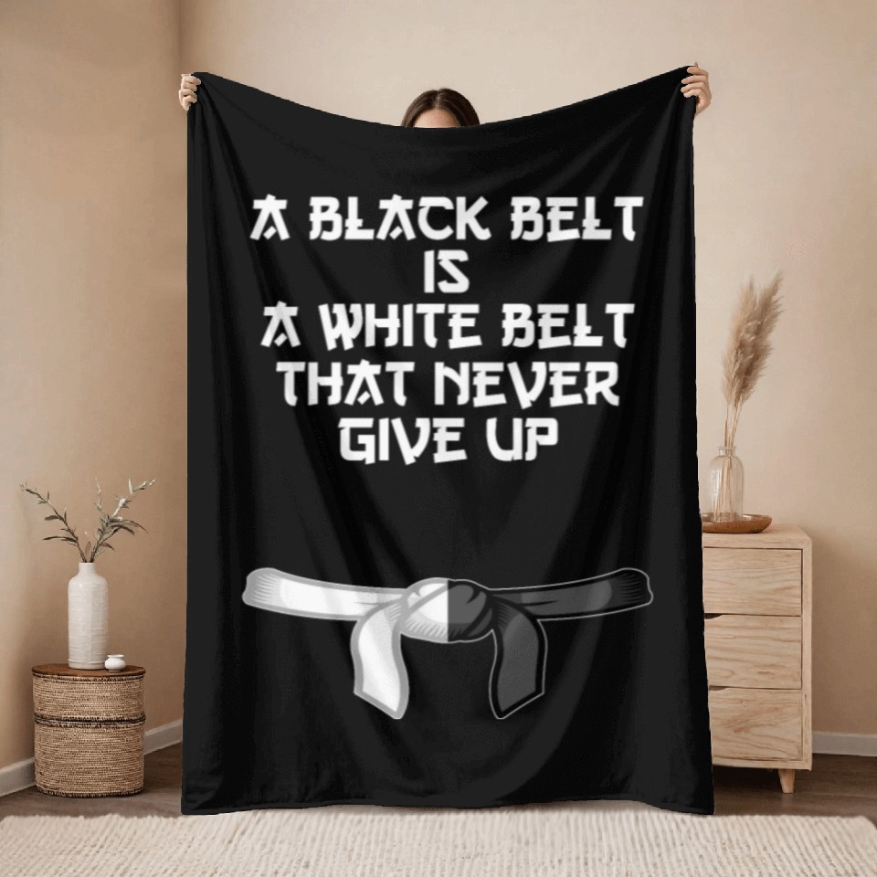 The item hot trend you're looking at is a black belt is a white belt that never give up Throw Blankets For Black belong theme Throw Blankets at Printblur