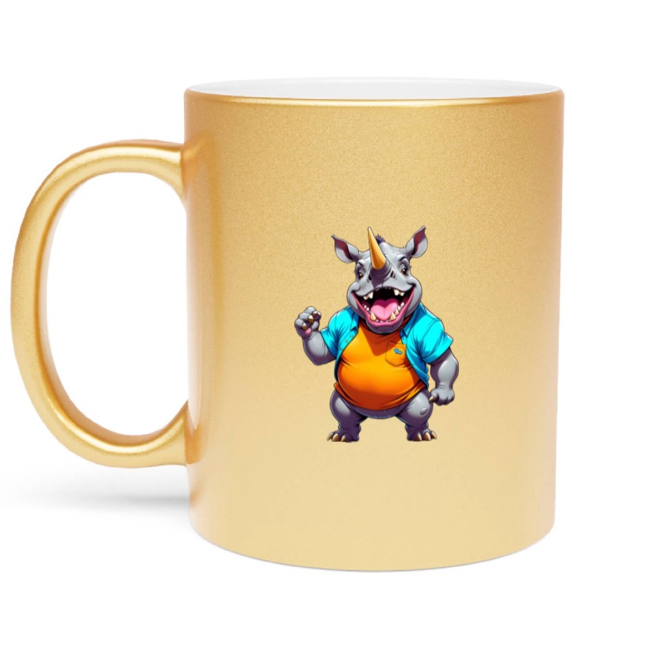 You're searching for a one-of-a-kind product A Cartoonish Rhinoceros in a Playful Pose Metallic Mugs For Gold belong theme Metallic Mugs at Printblur