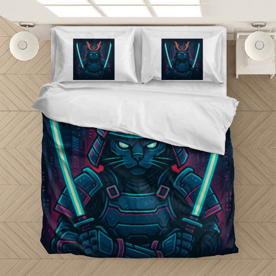 Shop for attractive A futuristic samurai cat in neon armor with glo Bedding Sets or see more Bedding Sets products on https://printblur.com right now!
