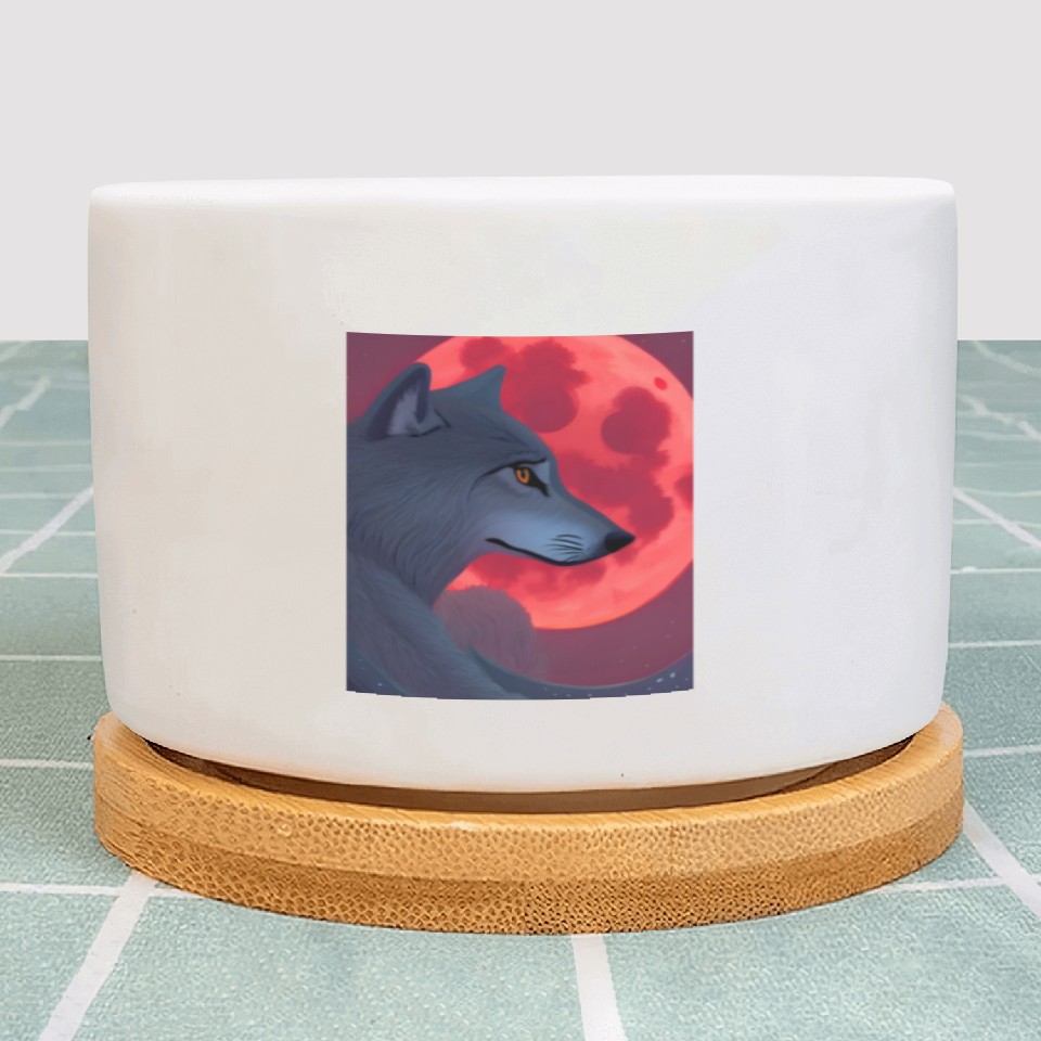 A Grey Wolf Staring at a Blood Moon Plant Pots