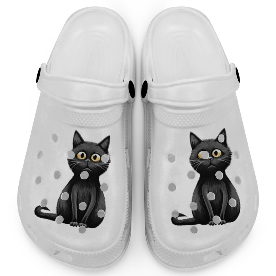 The item hot trend you're looking at is A midnight-colored cat with captivating amber eyes Clogs For Kids WHITE belong theme Clogs at Printblur