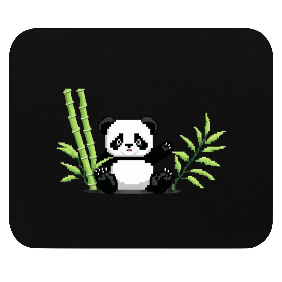 The product unique design you searched for is A pixel art of a panda with a bamboo leaf Mouse Pads For Black belong theme Mouse Pads at Printblur