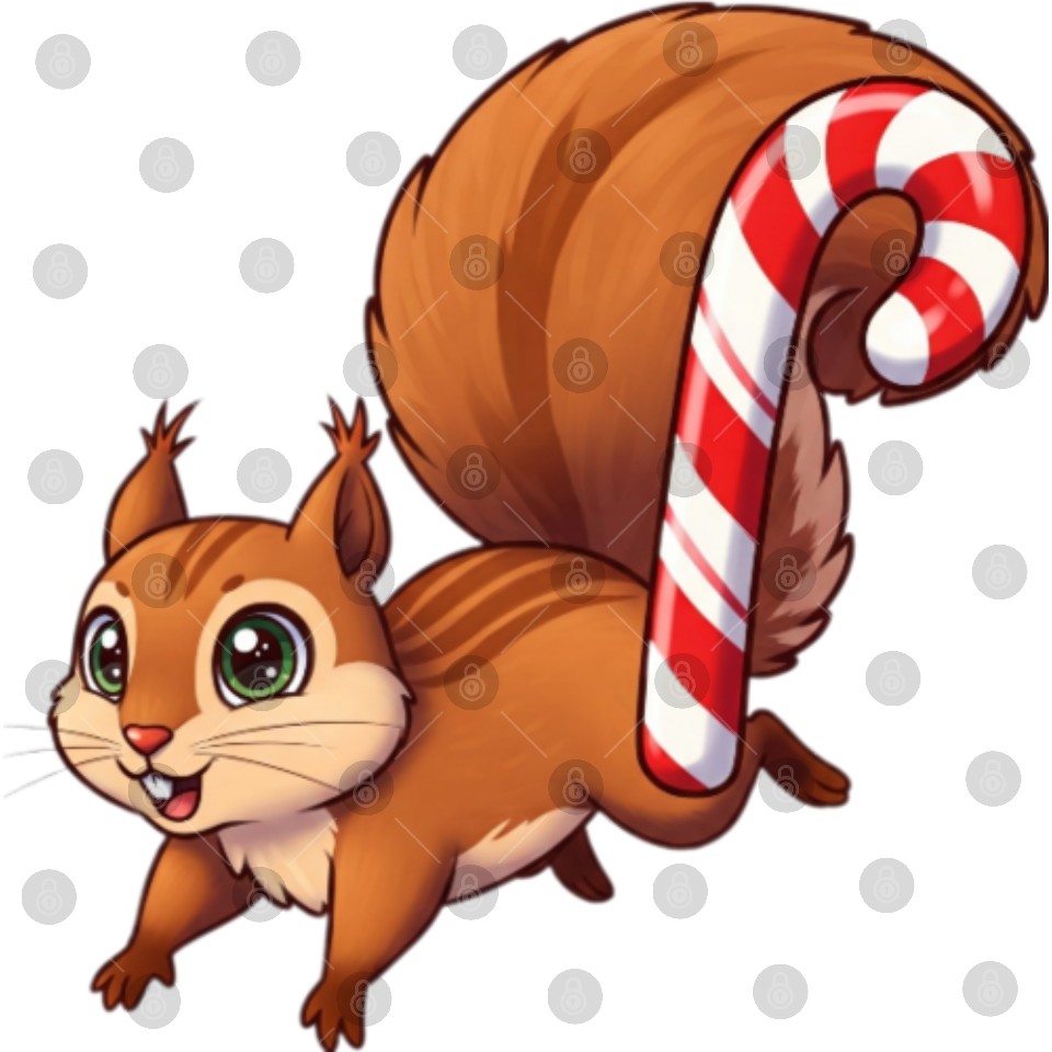 A squirrel with a candy cane tail. Digital Files