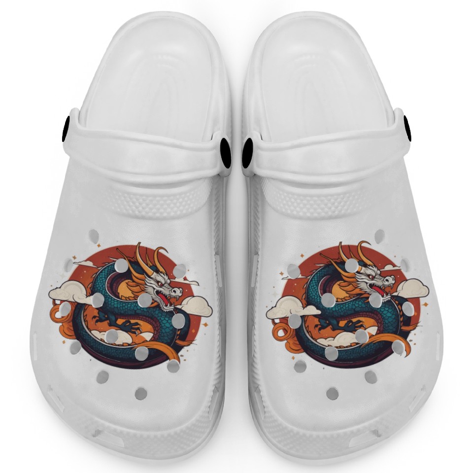 You're searching for a one-of-a-kind product a traditional Chinese dragon Clogs For Kids WHITE belong theme Clogs at Printblur