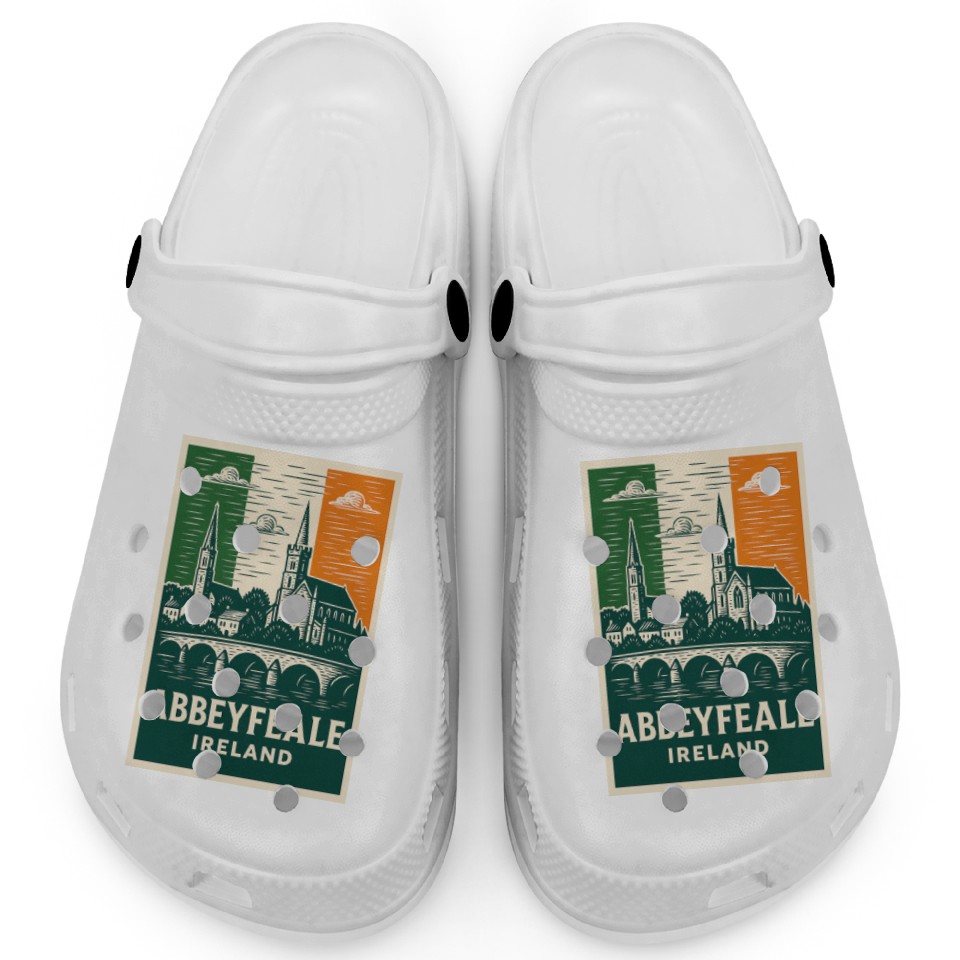 The product unique design you searched for is Abbeyfale Ireland Church Skyline Clogs For Kids WHITE belong theme Clogs at Printblur