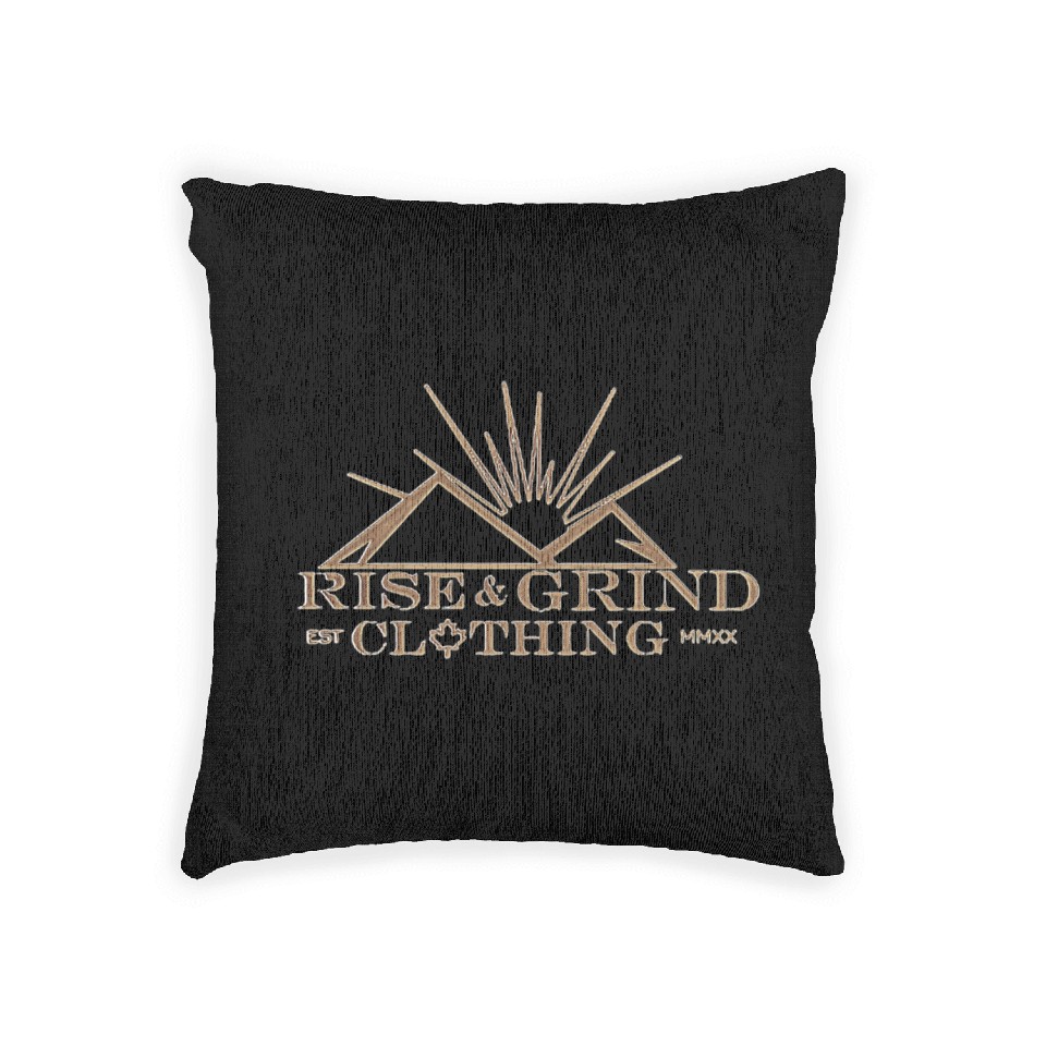 The product unique design you searched for is ABOVE THE MOUNTAINS RISE & GRIND CLOTHING CON LOGO Woven Pillows For Black belong theme Woven Pillows at Printblur