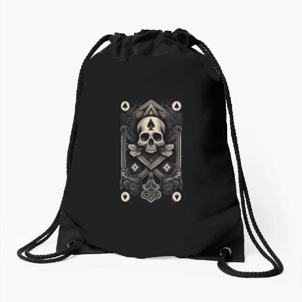 You are viewing an exclusive and elegant product Ace of Spades Skull Design • Gothic Card Art Drawstring Bags For Black belong theme Drawstring Bags at Printblur