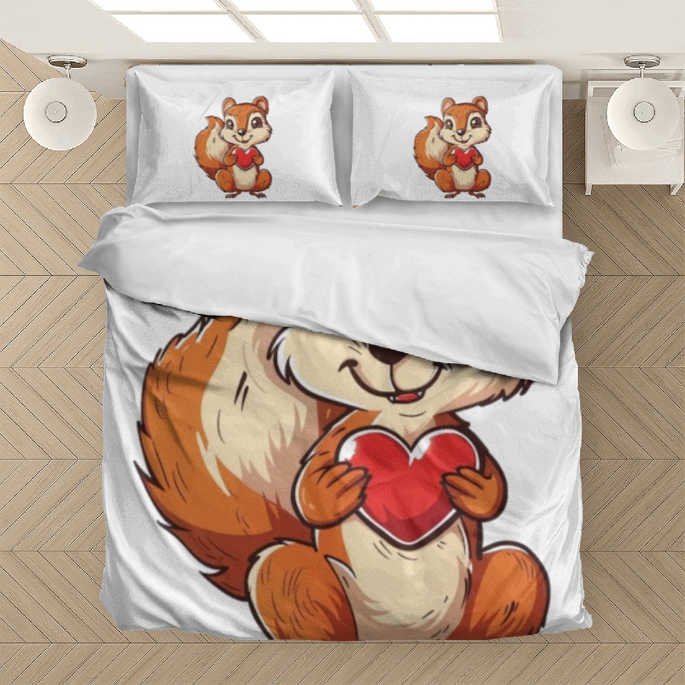 You're searching for a one-of-a-kind product Adorable Squirrel with Red Heart Illustration Bedding Sets For WHITE belong theme Bedding Sets at Printblur