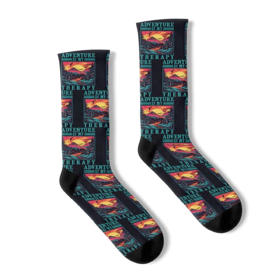 Buy stunning Adventure is my Therapy Mountain Camping Socks or see more Socks products at Printblur right now to receive many amazing discounts!