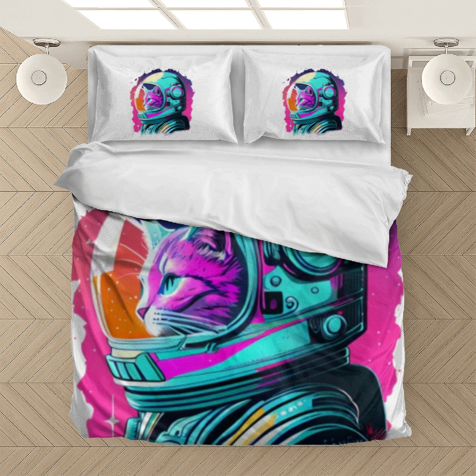 You are seeing a unique and impressive product Aesthetic Vaporwave Space Cat 80s 90s Astronaut Bedding Sets For WHITE belong theme Bedding Sets at Printblur