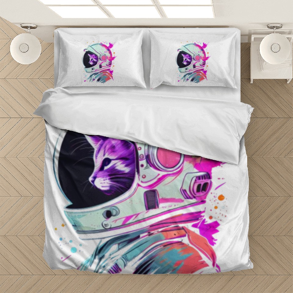 You're searching for a one-of-a-kind product Aesthetic Vaporwave Space Cat 80s 90s Astronaut Bedding Sets For WHITE belong theme Bedding Sets at Printblur