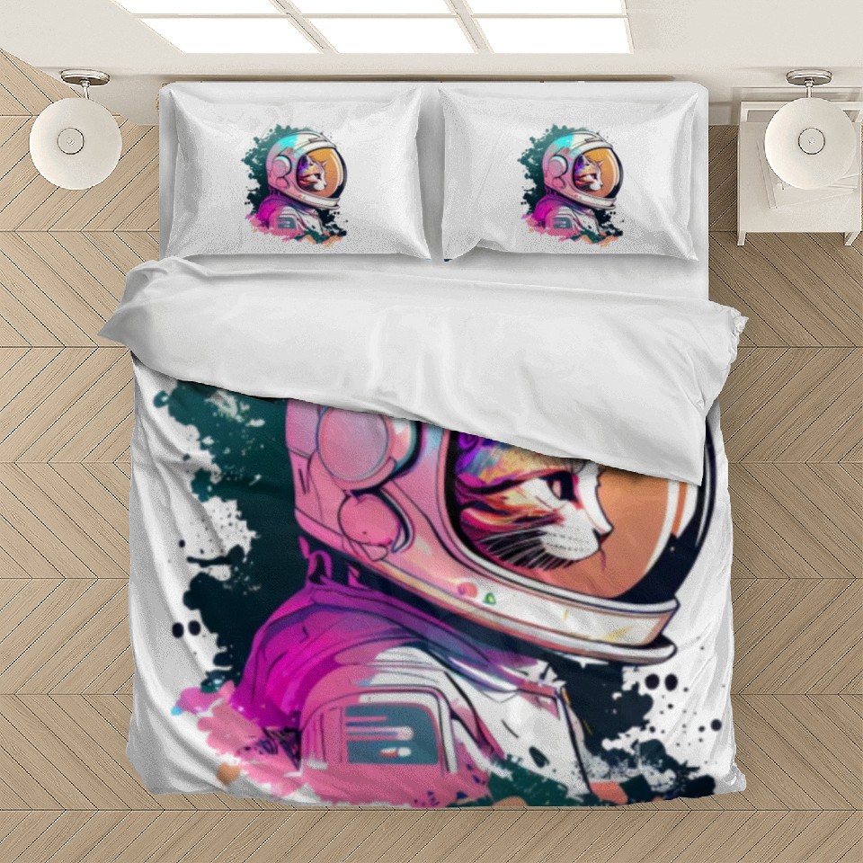 You are seeing a unique and impressive product Aesthetic Vaporwave Space Cat 80s 90s Astronaut Bedding Sets For WHITE belong theme Bedding Sets at Printblur