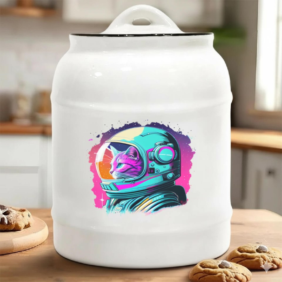 You're taking a peek at the product Aesthetic Vaporwave Space Cat 80s 90s Astronaut Ceramic Cookie Jars For belong theme Ceramic Cookie Jars at Printblur