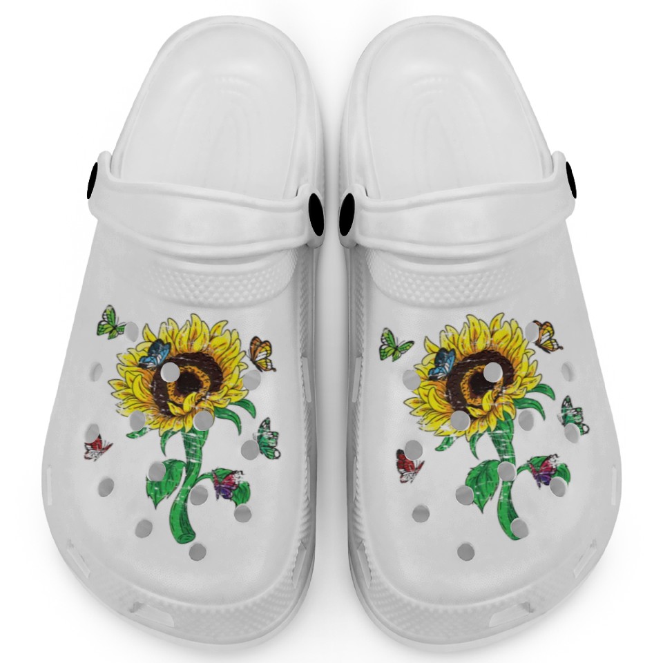 The item hot trend you're looking at is Aesthetics Sunflowers Nature Butterflies Yellow Su Clogs For Kids WHITE belong theme Clogs at Printblur