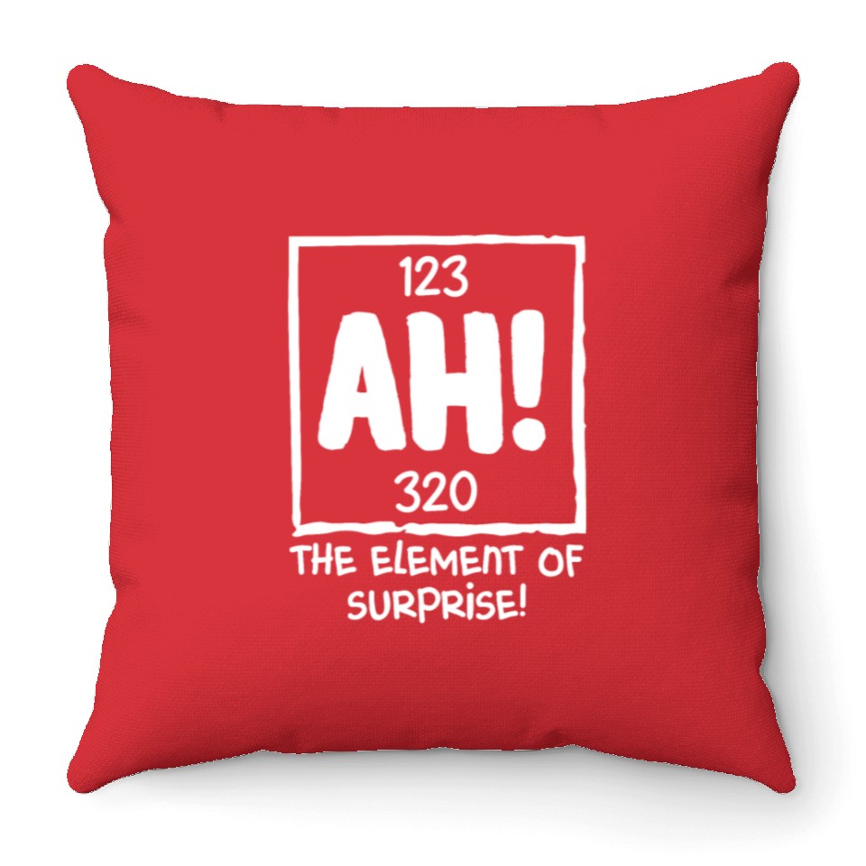 Buy eye-catching Ah The Element of Surprise Chemistry Science Humor Throw Pillows or see more Throw Pillows products at Printblur shop now to explore many surprises from our shop!