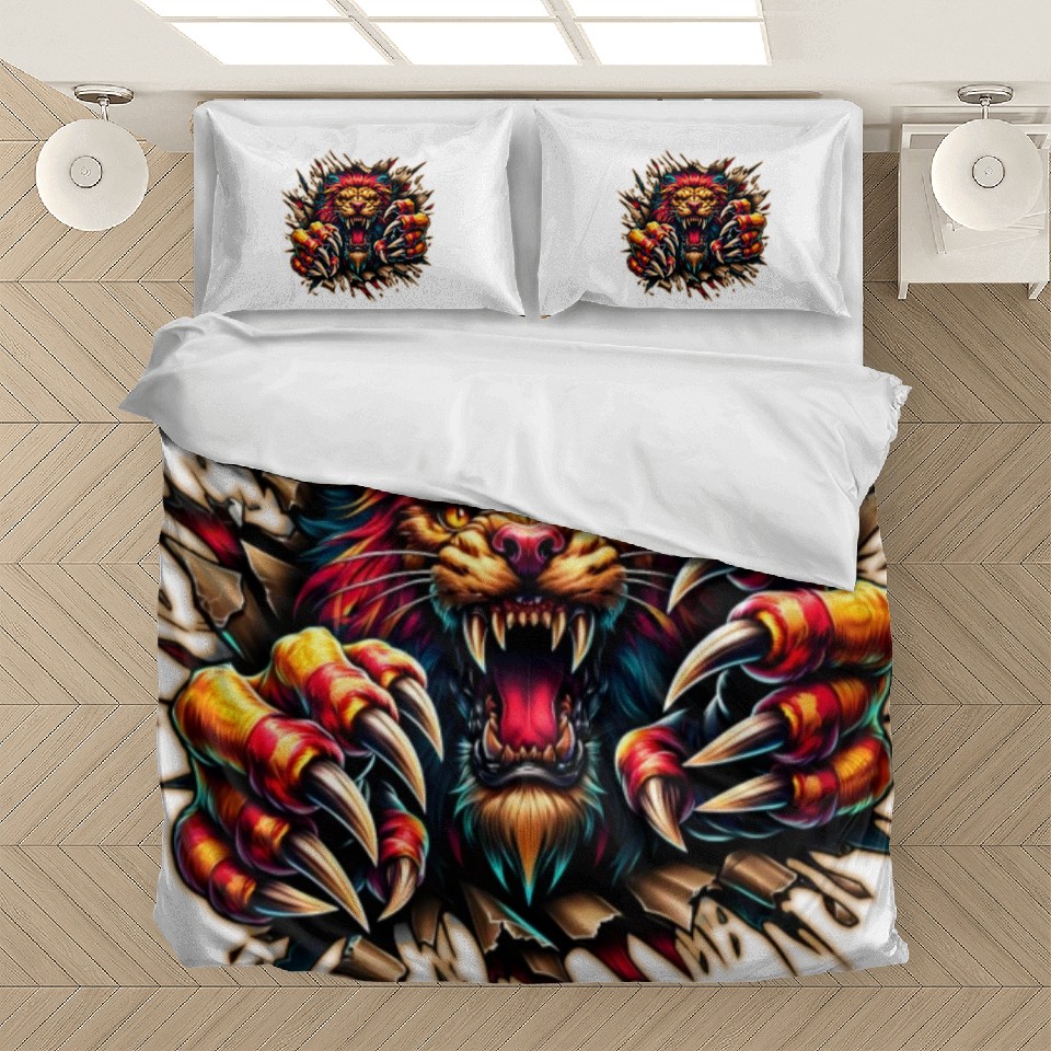 Own fascinating AI Lion Ripping Through Out Bedding Sets or see more Bedding Sets products now from Printblur shop to enjoy your shopping time!