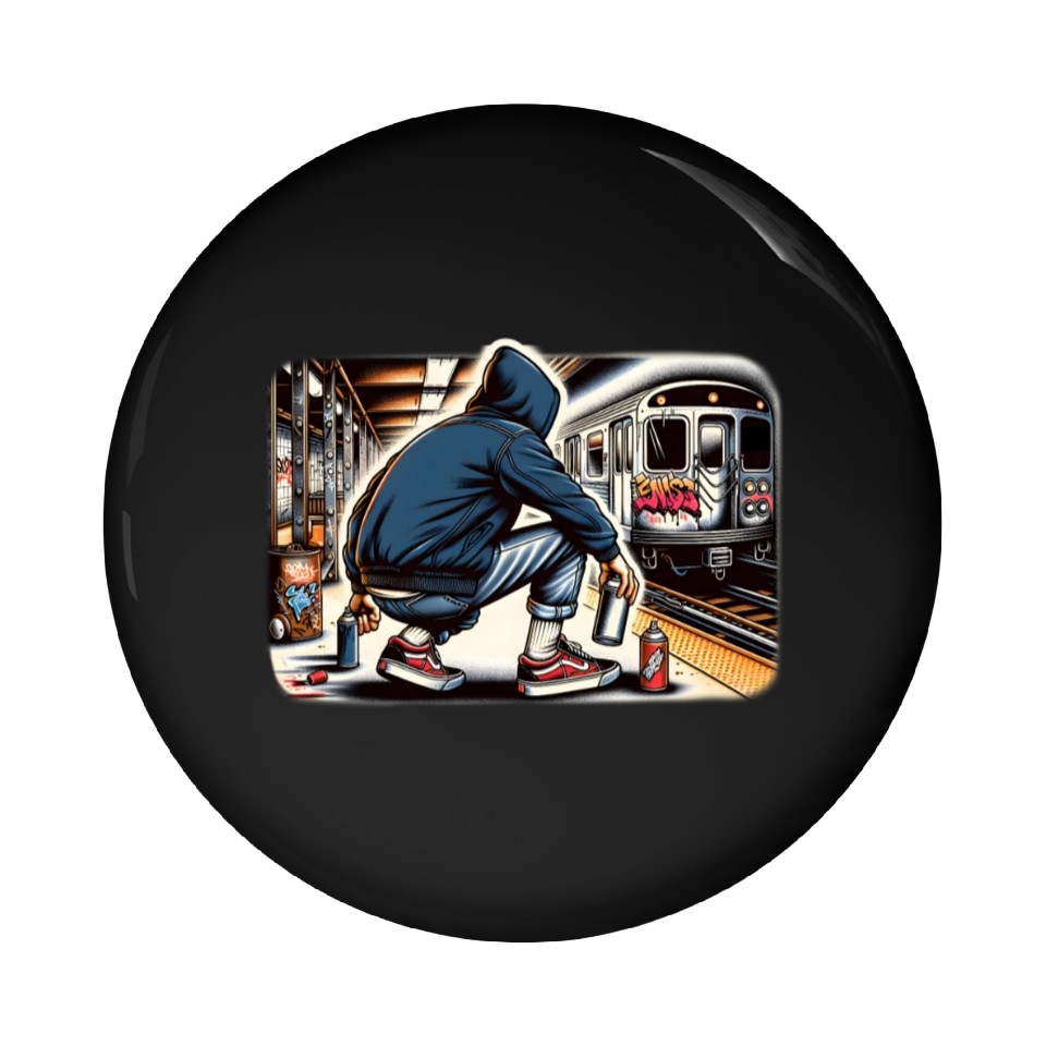 You're searching for a one-of-a-kind product AI Teen in Subway Layup Underground- Masked Border Pin Buttons For Black belong theme Pin Buttons at Printblur