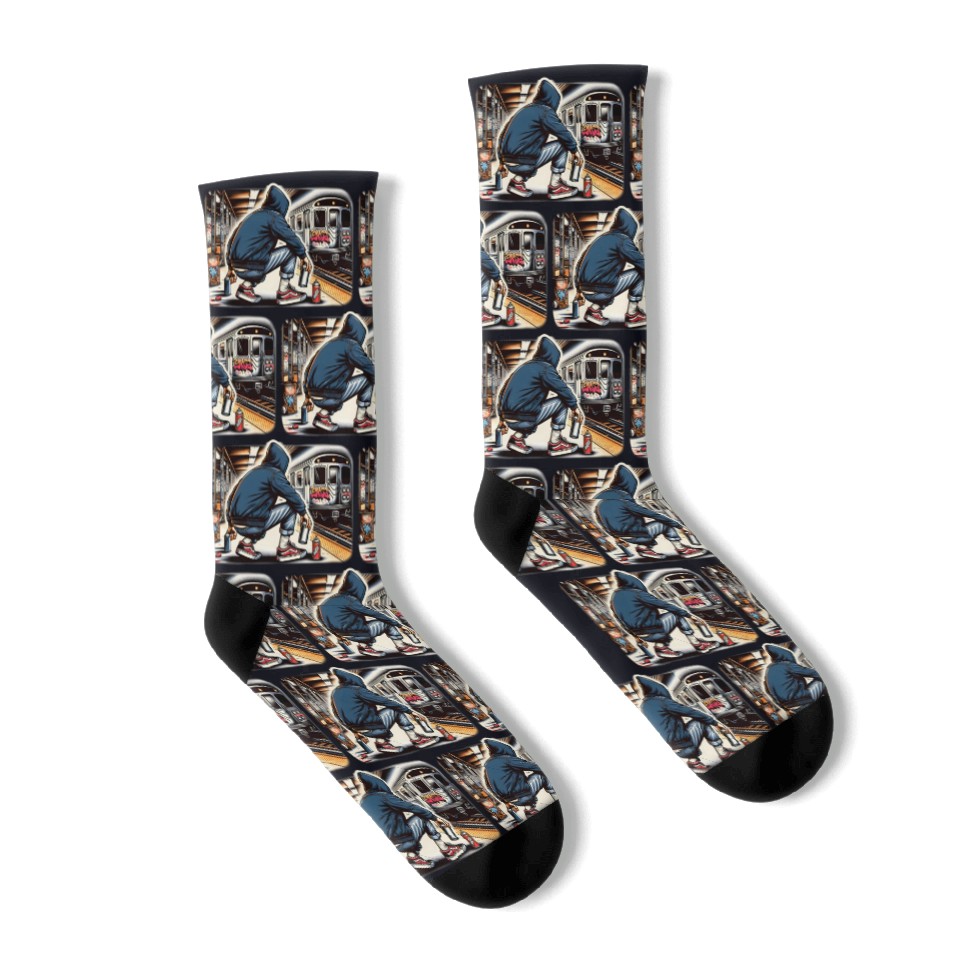 You're looking at the eye-catching product AI Teen in Subway Layup Underground- Masked Border Socks For Black belong theme Socks at Printblur